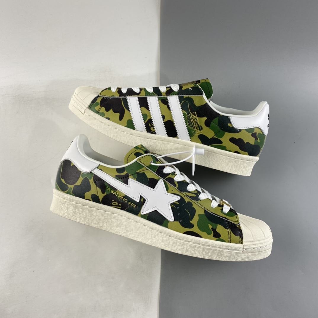 P220 BAPE x Adidas Superstar 80s 阿迪达斯猿人联名贝壳头全头层休闲板鞋 GZ8982