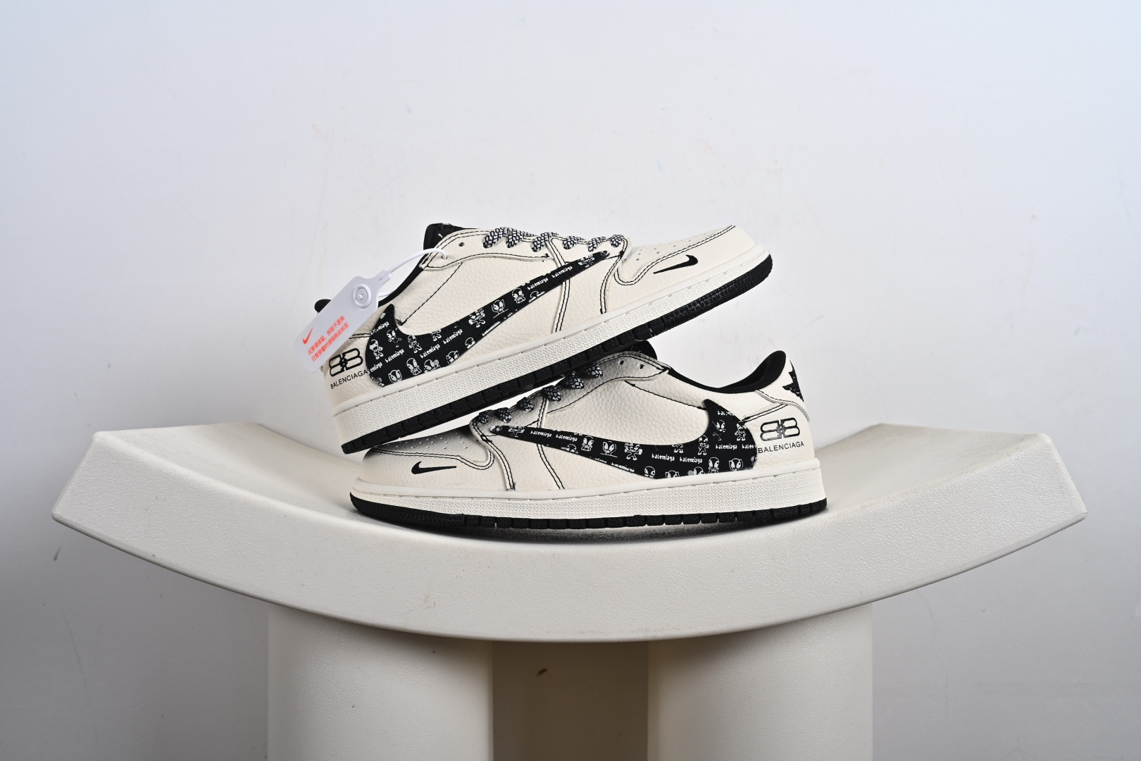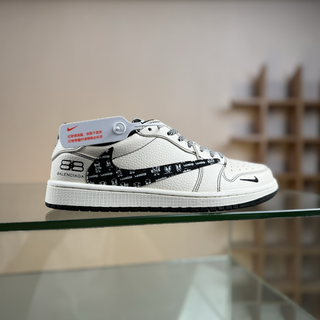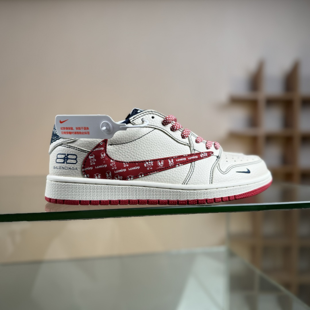 定制版 Balenciaga x Travis Scott x Air Jordan 1 Low 巴黎世家 x AJ1 低帮 黑白红倒钩 AJ1 乔丹1代 aj1 乔1 低邦 黑白红倒勾联名 XS2025-079