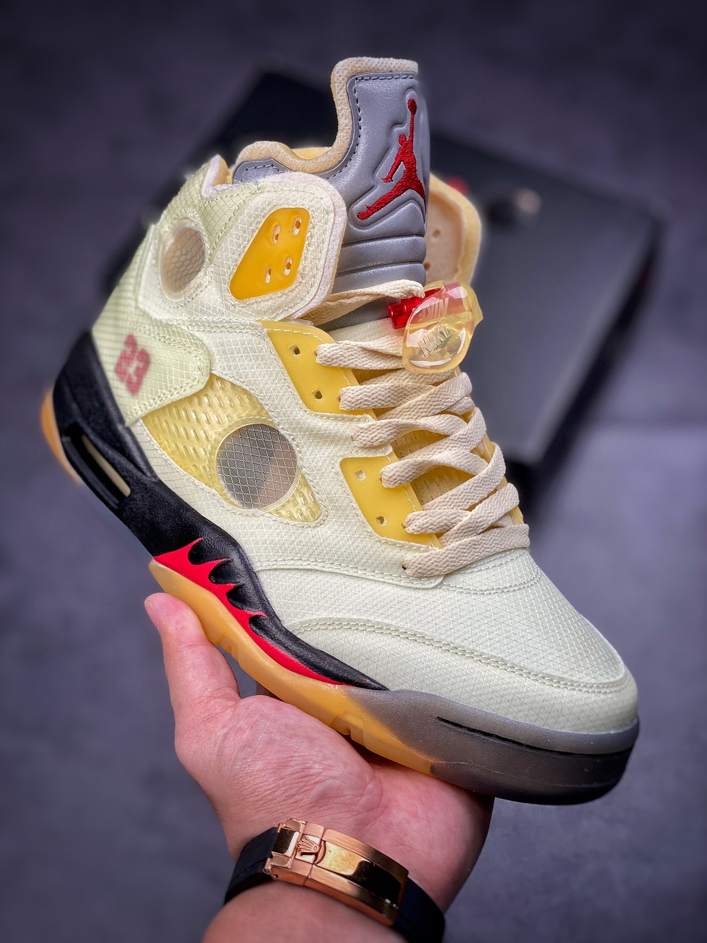 400 Air Jordan 5 x off white 联名款 AJ5 ow 乔丹5代篮球鞋/联名浅黄 DH8565-100