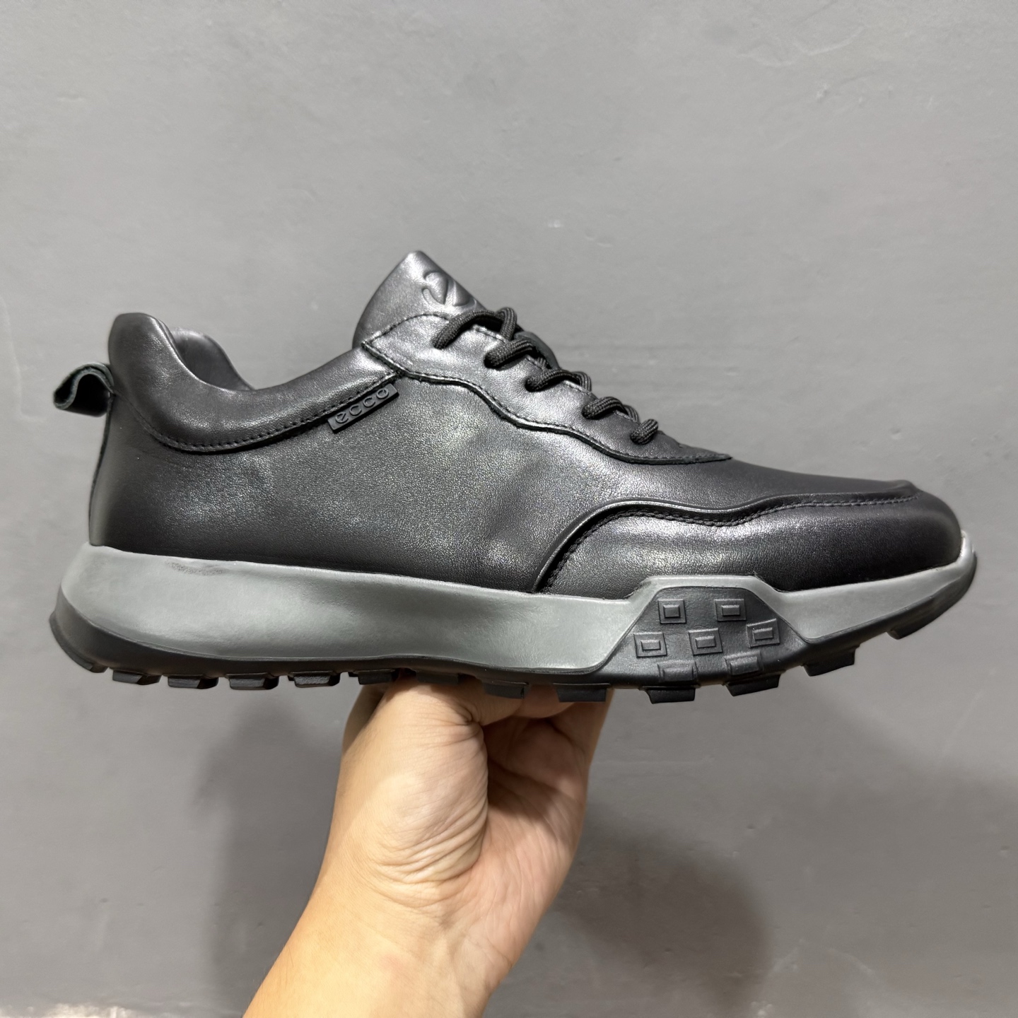 原装级别 ECCO爱步休闲运动鞋男 纯色拼接防滑耐磨运动鞋