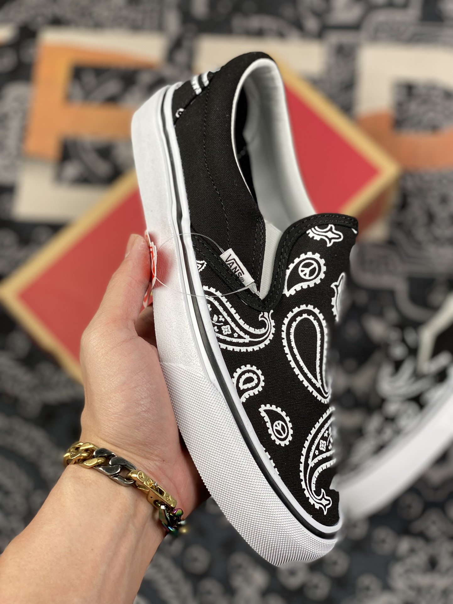 160 vans Slip-On 一脚蹬黑白涂鸦50周年腰果花帆布硫化板鞋