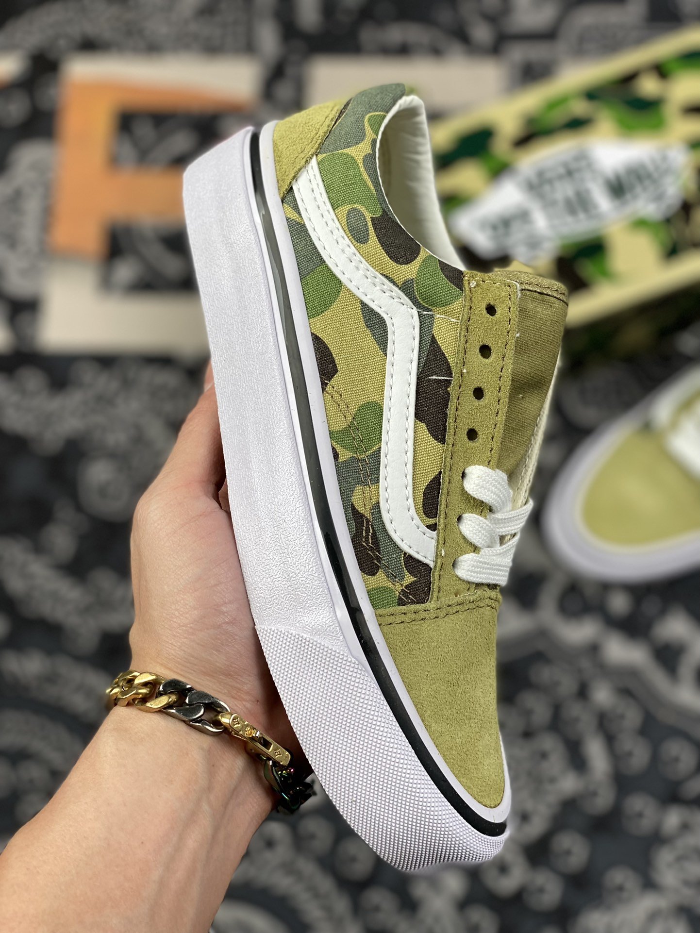 170 Bape x vans Old Skool 猿人头联名款迷彩低帮帆布板鞋