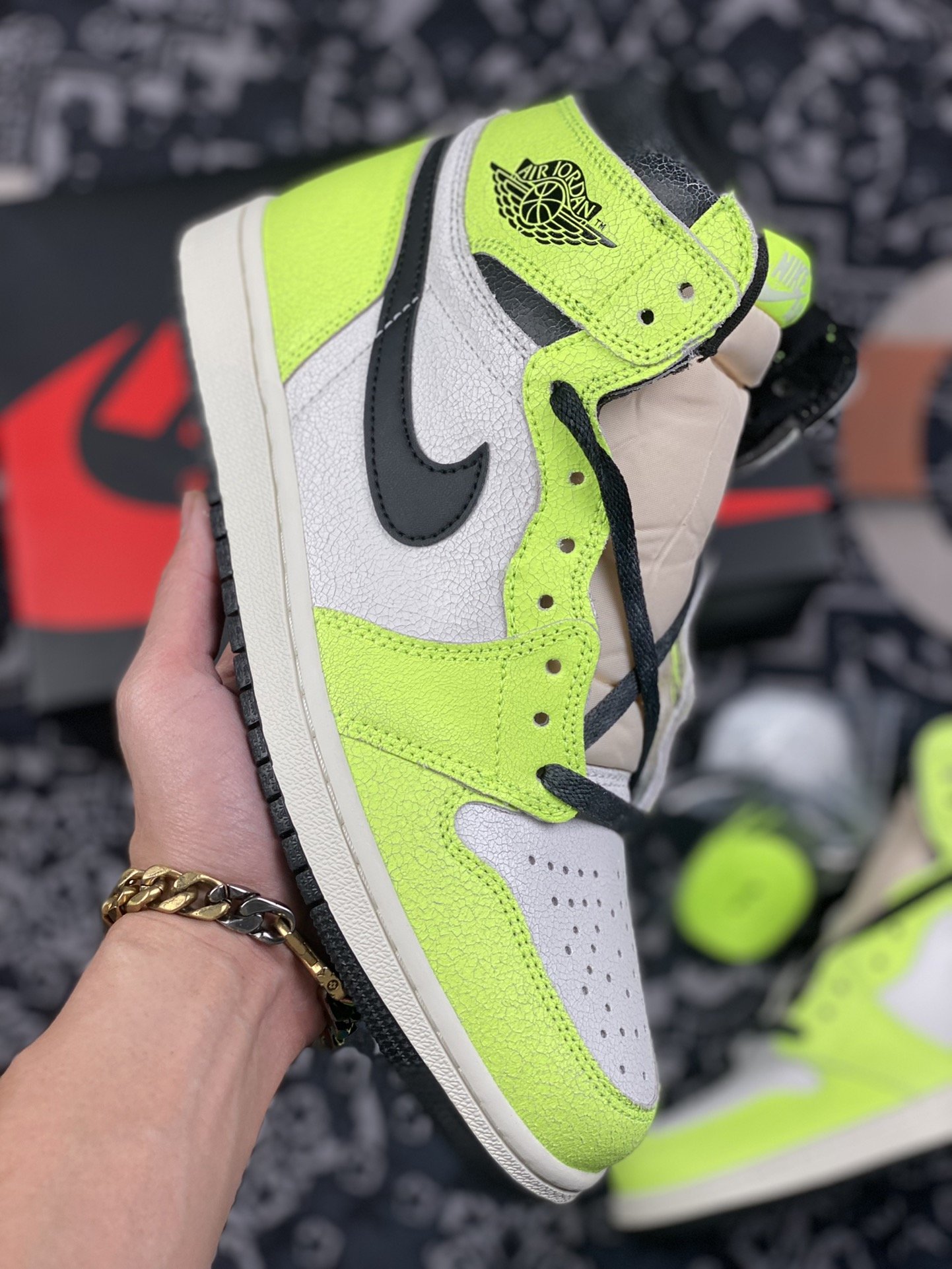 280 Air Jordan 1 AJ1 乔丹1代高帮篮球鞋/白绿 荧光绿 555088-702