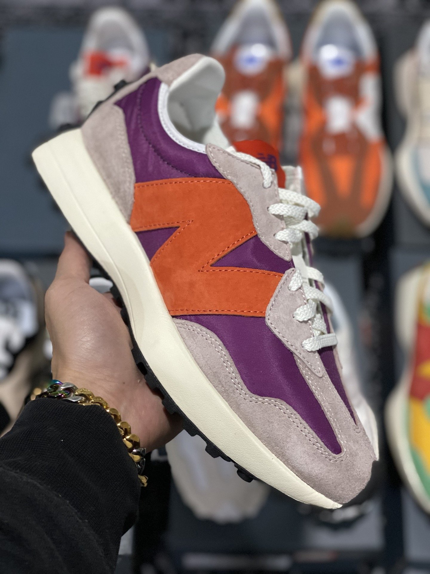 240 甄选 莞顶NB327 复古跑鞋 橙蓝鸳鸯 经典正品猪皮