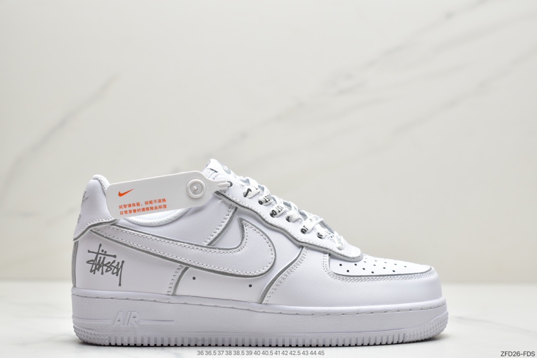 P280 Stussy x Nike Air Force 1 Low 斯图西联名 白炫彩反光空军一号低帮休闲板鞋 BQ6246-019