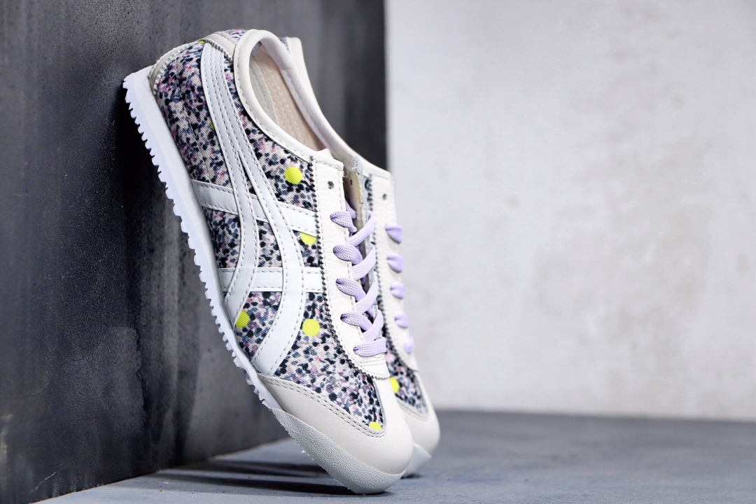 180公司级 阿斯克斯OnitsukaTiger鬼冢虎亚瑟士 紫罗兰 彩色/米白 专柜同步四联吊牌 头层皮 帆布低帮休闲运动鞋