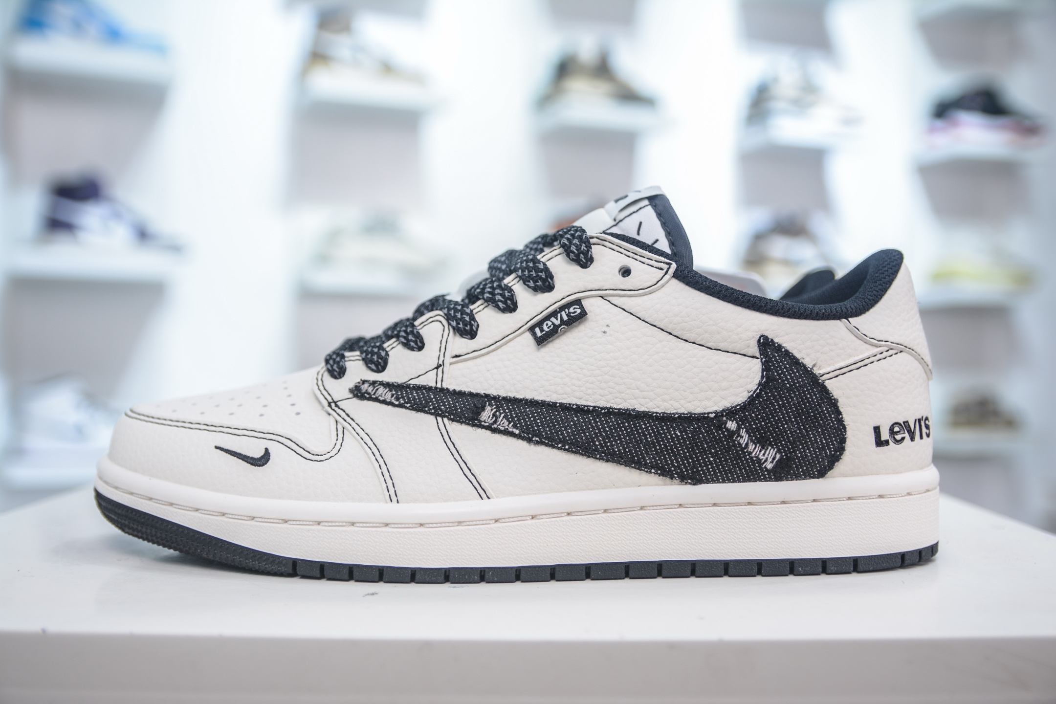 TS x Air Jordan AJ1 Low x Levi’s 倒钩低帮联名李维斯-白黑牛仔 LE2436-135