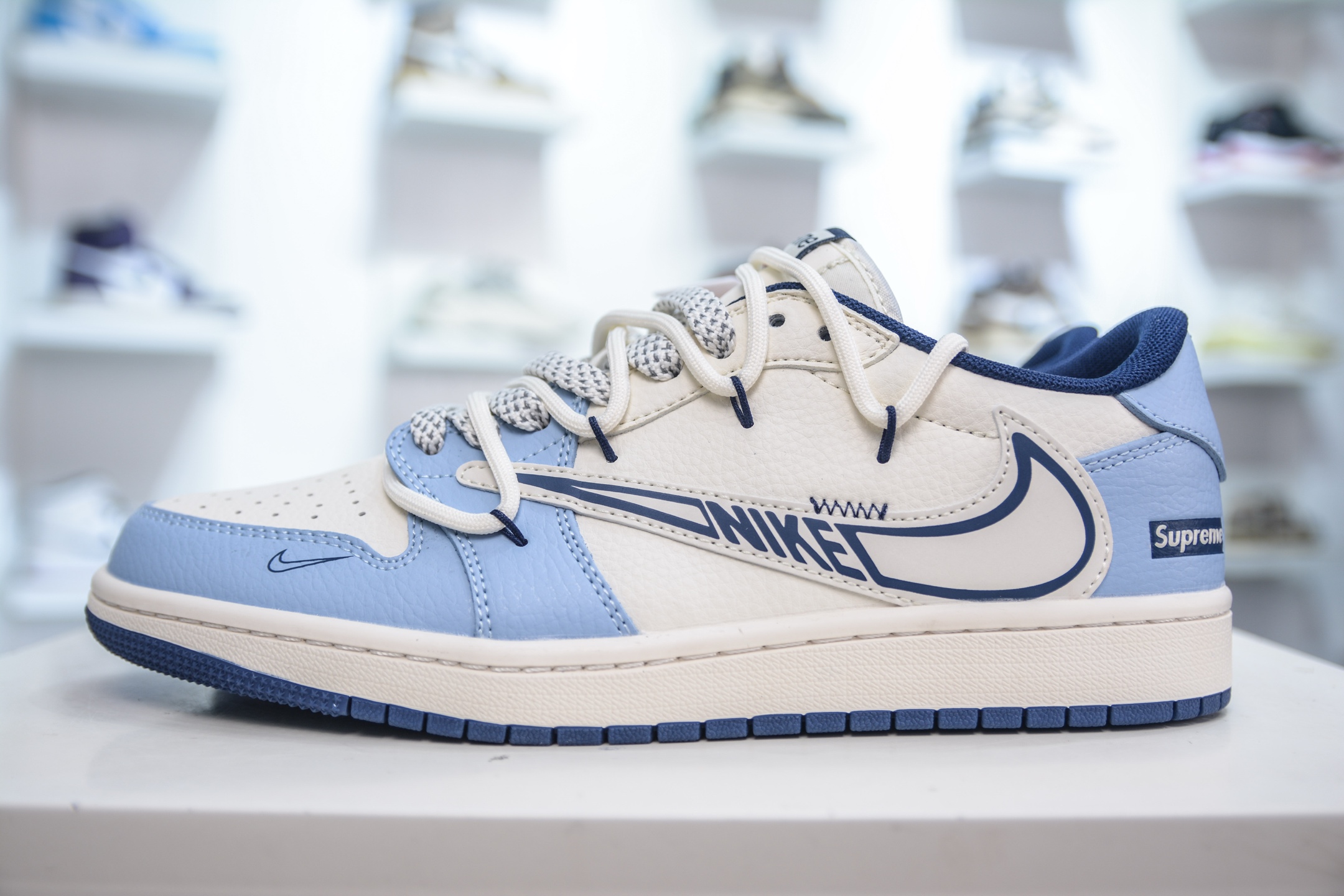 TS x Air Jordan AJ1 Low x Supreme 倒钩低帮SUP联名-白蓝绑带 DM6868-106
