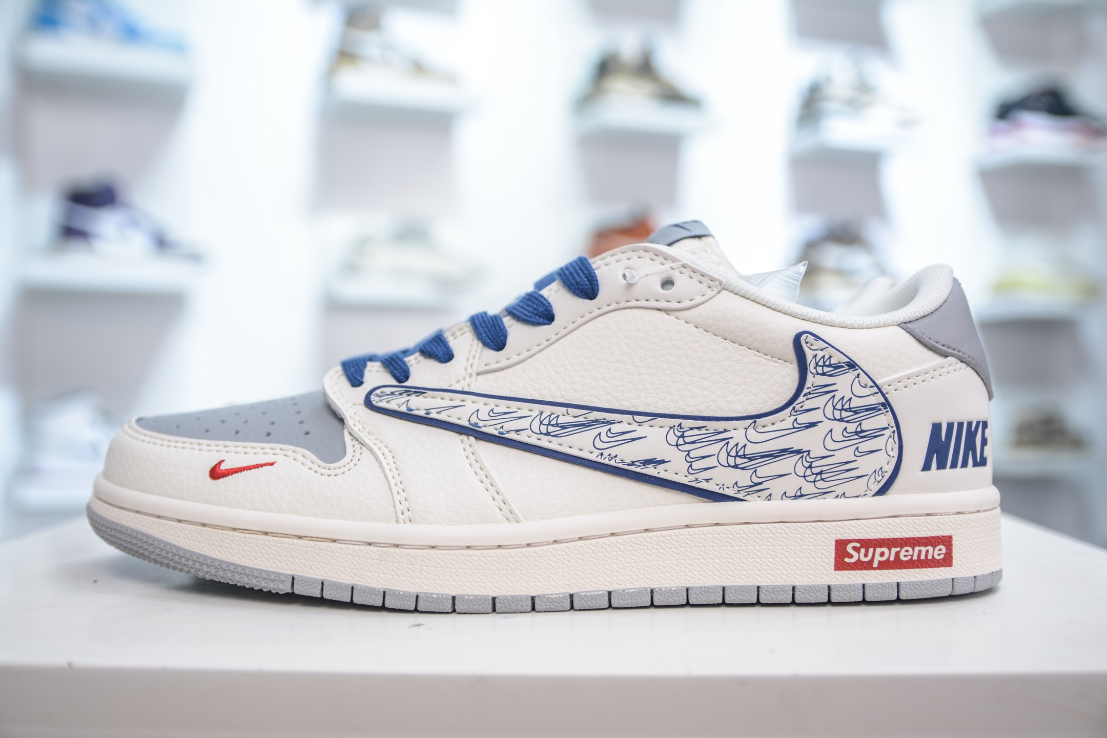 TS x Air Jordan x Supreme AJ1 Low 倒钩低帮联名SUP-白灰多重勾 XS7089-597