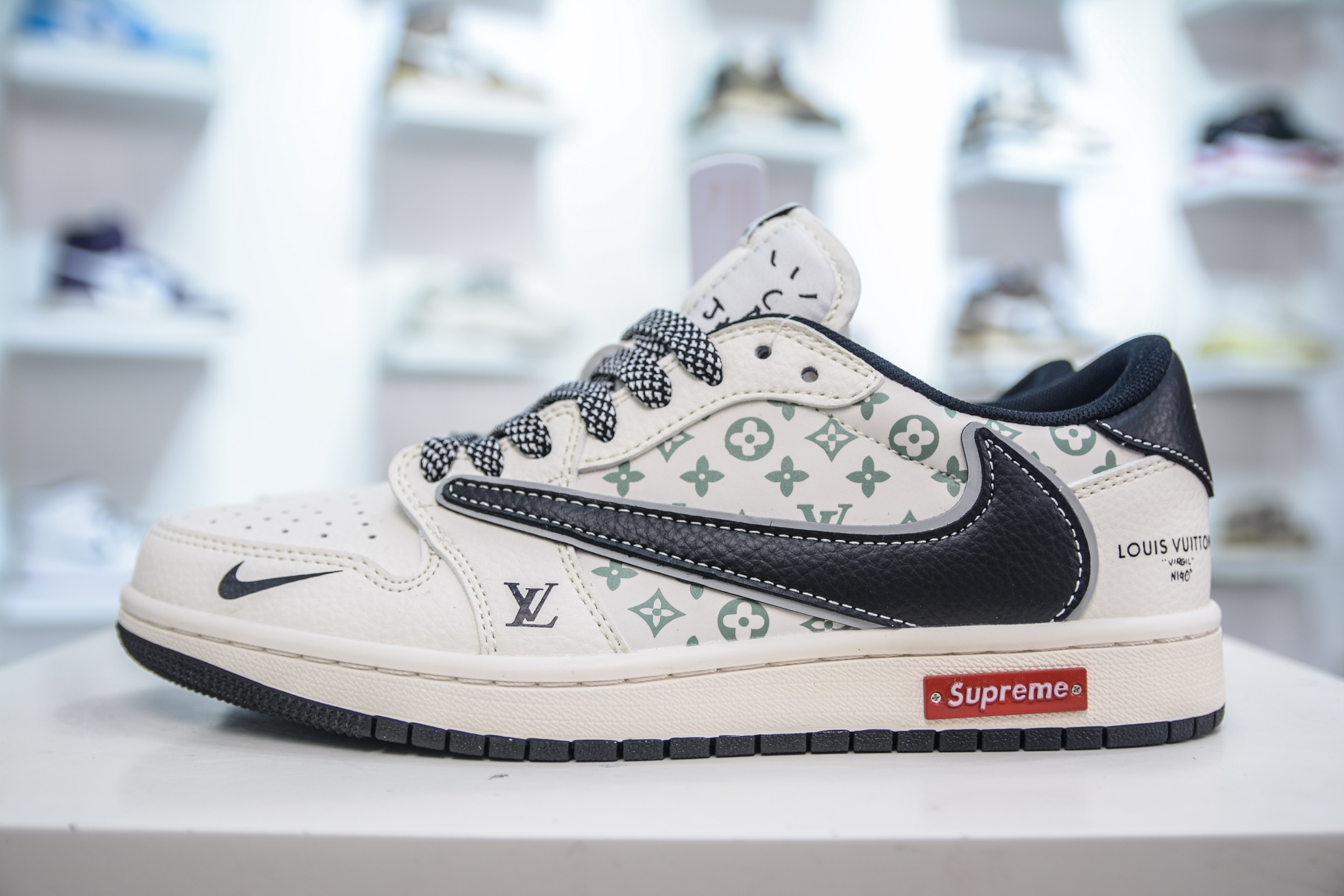 TS x Air Jordan x Louis Vuitton X Supreme AJ1 Low 倒钩低帮LV SUP 联名-白黑印花 YX5066-335