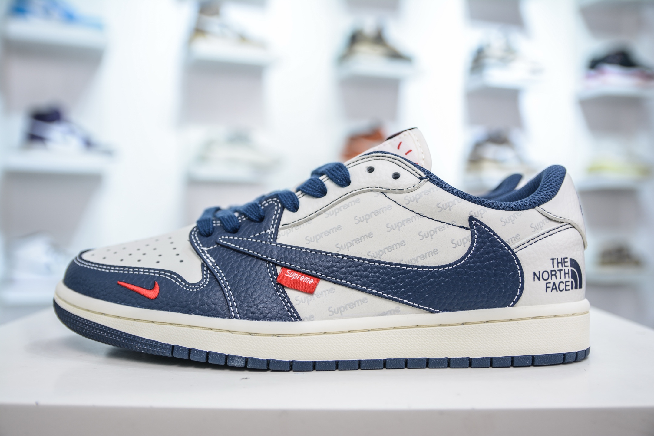 The North Face x Supreme x Travis Scott x Air Jordan 1 Low乔丹1代低帮倒钩北面Sup联名-奶白深蓝 XZ5749-009