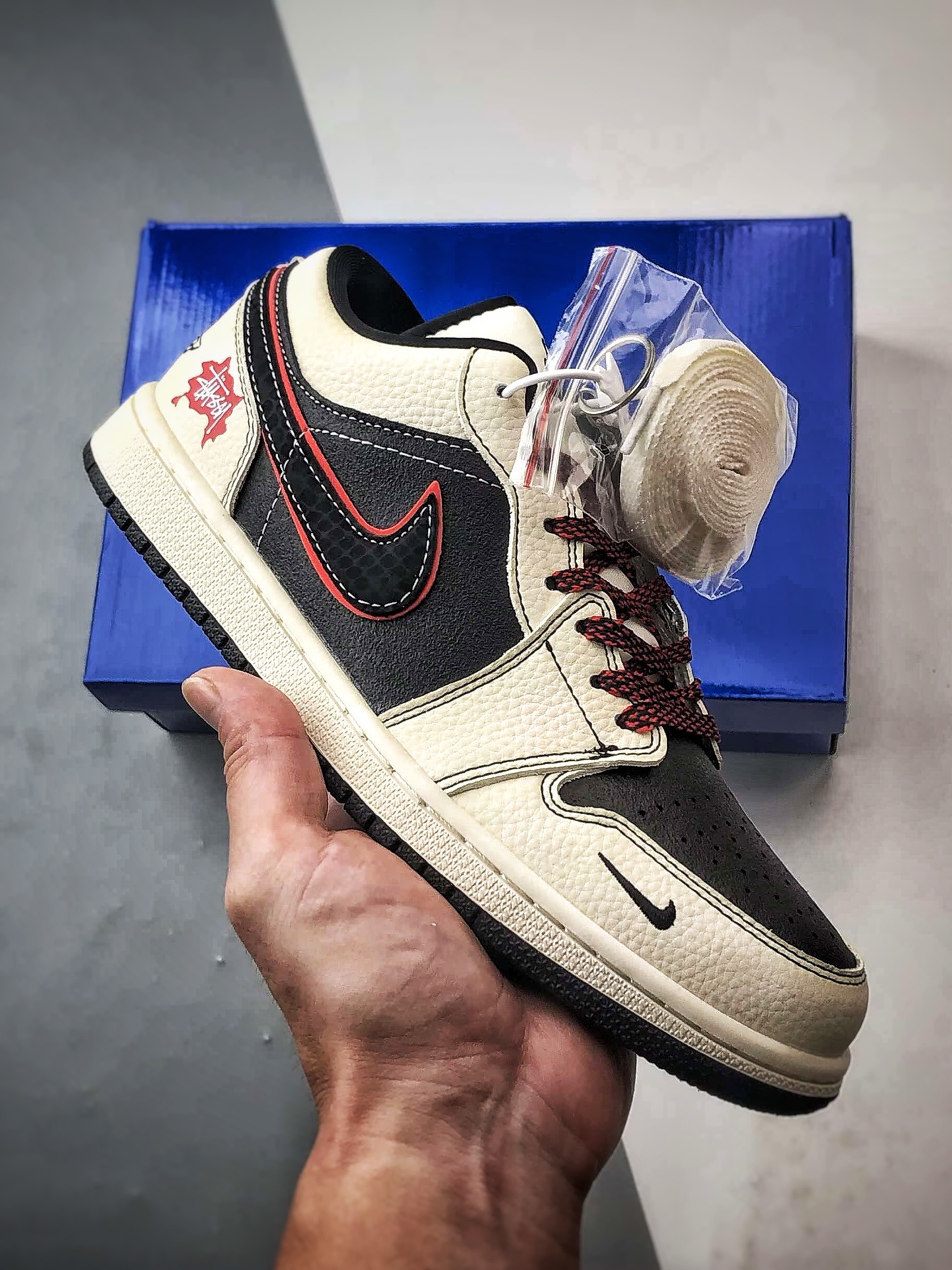 Air Jordan 1 Low ”高端定制” 斯图西米白黑红 QG1988-013