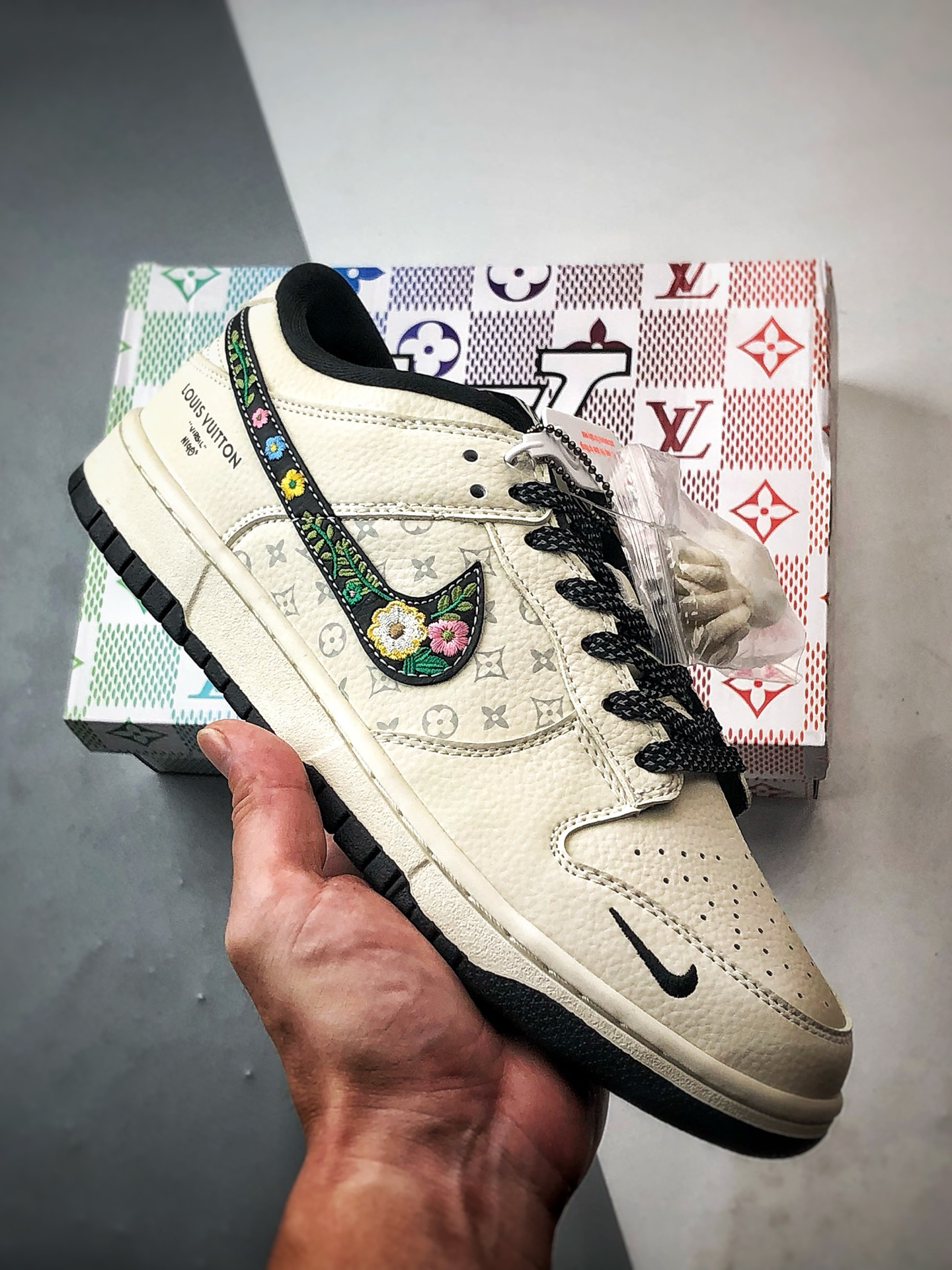 NK Dunk Low Retro ”DIY高端定制” LV米白黑刺绣钩 低帮休闲运动板鞋 DS6608-017