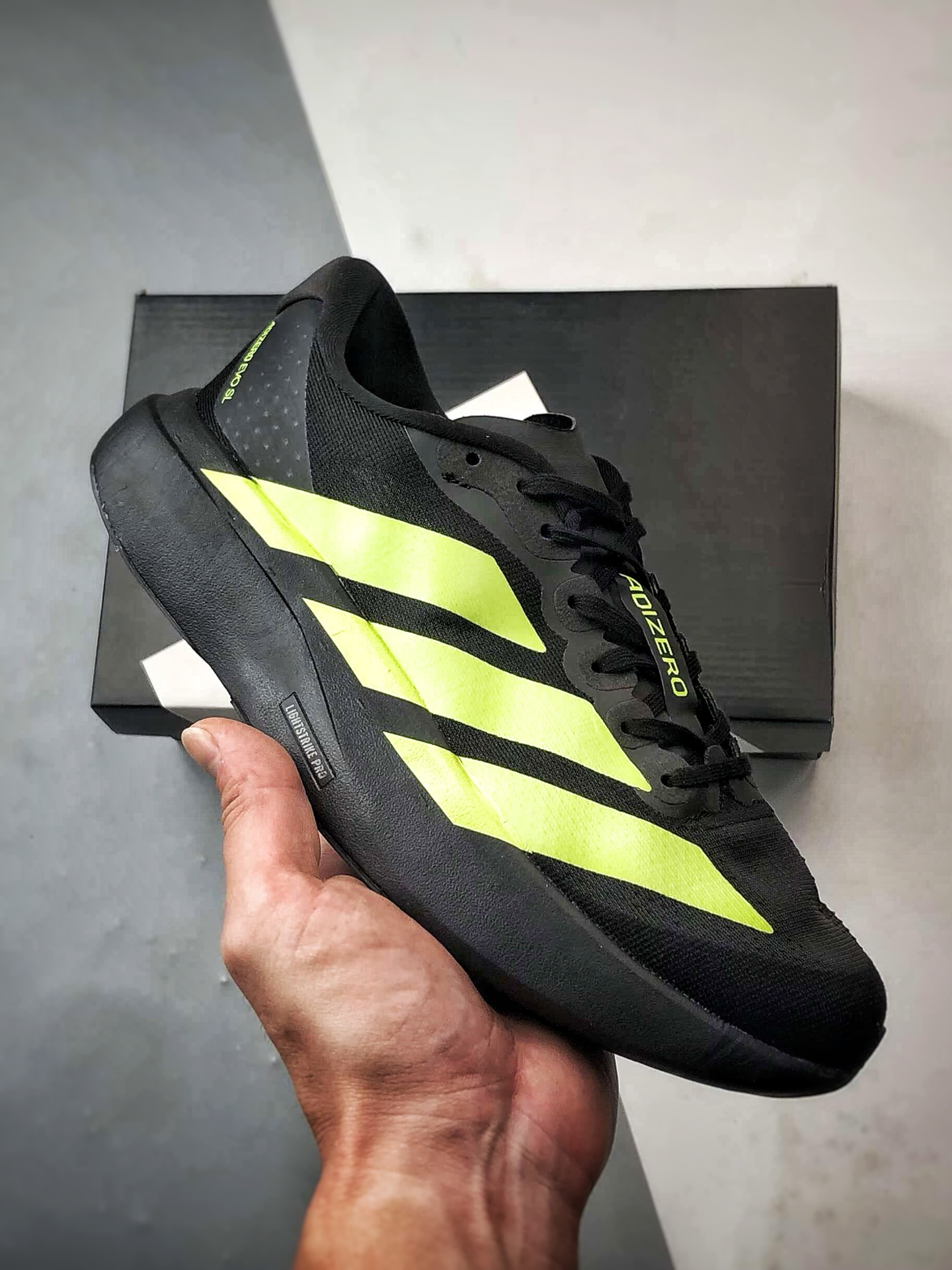 AD Adizero Evo SL 黑绿 零度系列马拉松轻量竞速运动跑鞋 JR3420