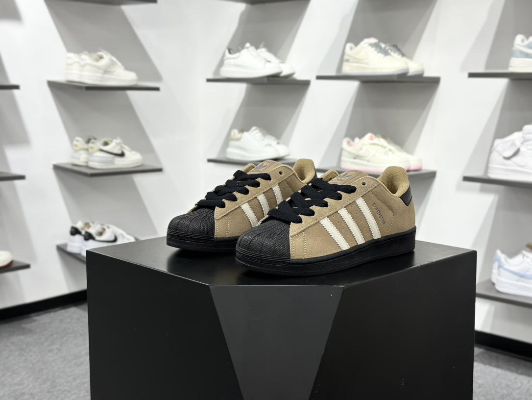 三叶草Adidas Originals Superstar II”Blue/White”经典贝壳头系列低帮百搭休闲运动板鞋“绒面浅棕白黑” JQ3221